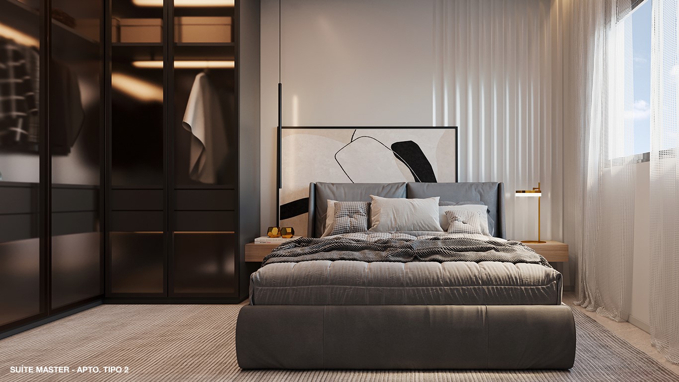 Os apartamentos do prédio são bem projetados, com um layout funcional e elegante, oferecendo uma boa iluminação natural e ventilação. Cada unidade garante que os moradores desfrutem de uma vista belíssima da cidade e ainda existem áreas adicionais para relaxar e socializar com os vizinhos.