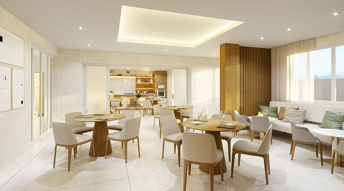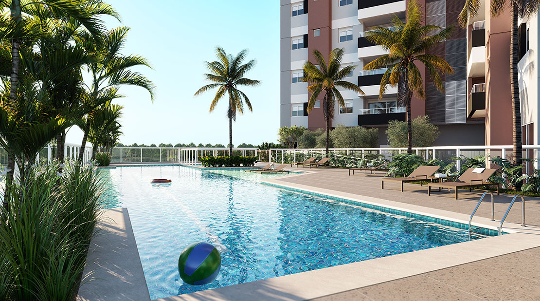 Conforto também está garantido, com piscina com borda de vidro e sistema de aquecimento. Lavanderia coletiva, sacada gourmet equipada com churrasqueira a gás. Ainda existem sensores de presença ascendendo as luzes apenas quando necessário, garantindo mais economia.